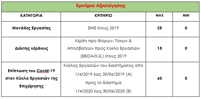 Η ενίσχυση των επιχειρήσεων που επλήγησαν από την πανδημία, με τη μορφή μη επιστρεπτέας επιχορήγησης ως κεφάλαιο κίνησης για την κάλυψη εξόδων τους.