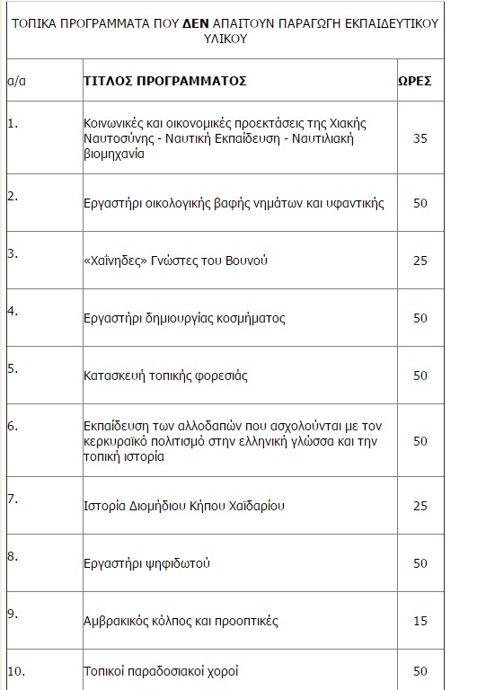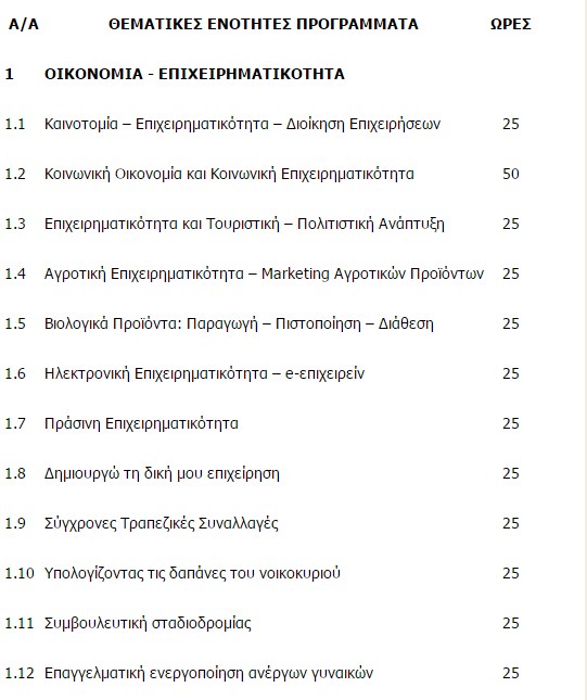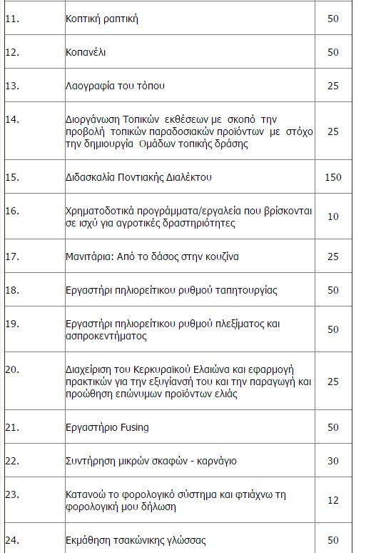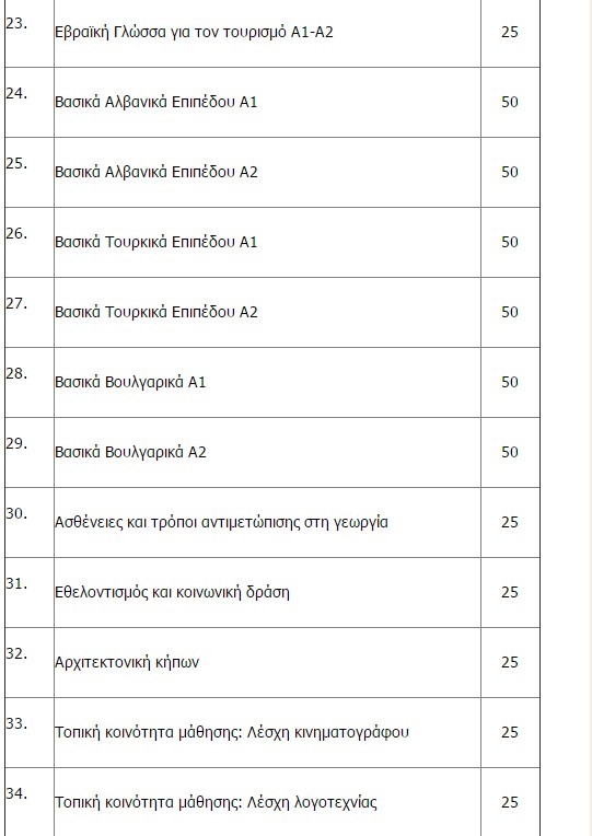 Στο Κ.Δ.Β.Μ του Δήμου Έδεσσας μπορούν να δημιουργηθούν τμήματα για τα ακόλουθα προγράμματα: