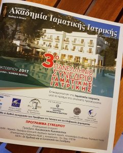 Με μεγάλη επιτυχία πραγματοποιήθηκε το 3ο Πανελλήνιο Συνέδριο Ιαματικής Ιατρικής στα Καμένα Βούρλα στις 6-8 Οκτωβρίου 2017, το οποίο διοργάνωσε η Ελληνική Ακαδημία Ιαματικής Ιατρικής.