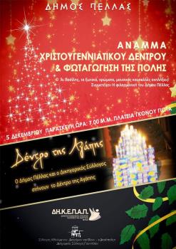 Την Παρασκευή 5 Δεκεμβρίου, ώρα 19.00 ο Δήμαρχος Πέλλας Γρηγόρης Στάμκος θα ανάψει το Δέντρο των Χριστουγέννων του Δήμου Πέλλας στην πλατεία Γκόνου Γιώτα.
