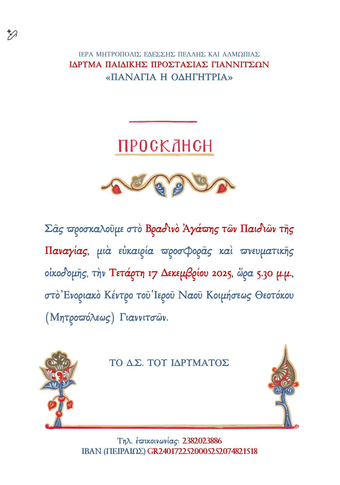 Πρόσκληση τηλ κ ΙΒΑΝ